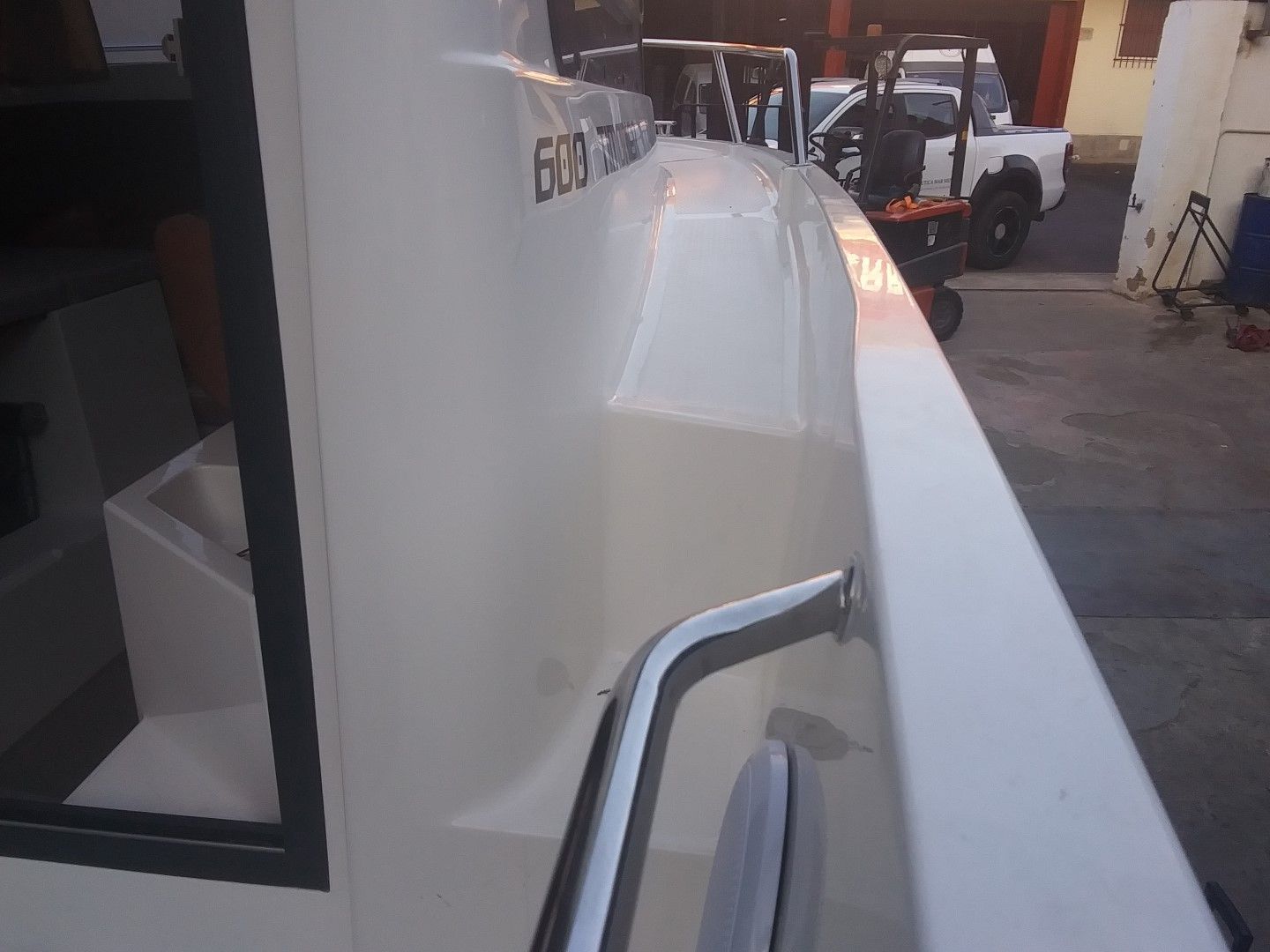 Pulpito de proa abierto • Balcón inox extralargo hasta bañera, abierto en proa para facil acceso por proa y para las labores de botar el ancla • Roldana de proa inox, en la punta del botalón de poliester • Pozo de anclas •Colchonetas solarium de proa •Dos camas en cabina con colchonetas • Pieza central hace cama de tres • Cabina interior tapizada laterales y techo extraluxe, alta calidad • Ventanas correderas en patronera • Portillo en techo cabina • Cortinas interiores en ventanas • Bandejas laterales en cabina • Luz en techo cabina • Asiento piloto luxe con regulacion • Suelo con moqueta, en cabina • Lavabo en timonera, con grifo • Dirección completa mecanica con volante • Amplia patronera con taquilla lateral portaobjetaos - Dos focos en techo iluminación bañera • Puertas cierre timonera • Pasamanos en techo patronera • - Amplio cofre en suelo bañera • Lavabo con deposito de agua de 50L• Pasamanos grandes inox en regalas bañera • Tanque fijo fuel 130 lt en inox, con reloj indicador y toma exterior • Instalacion eléctrica+ cuadro • Limpiaparabrisas electrico, pantografico • Luces navegación • Bomba achique • Desagues de bañera • WC quimico • Escalera de baño • Conchas desagues laterales en inox • En bañera comedor completo en la banda de babor, formado por bancos de poliester en forma de L. • Colchonetas para asientos• Cofres bajo asientos - Mesa con soporte telescópico • Solárium con colchonetas • Otro solarium extra exterior en puente de proa- General: Limpiaparabrisas pantografico doble • 4 cornamusas •3 cancamos de amarre • Plataformas de baño nuevo modelo 2024 en estandar - Escalera de baño--- >>> (La diferencia de modelo SPORT al modelo 610 STD, esta en los accesorios marcados en negrita)<<<<