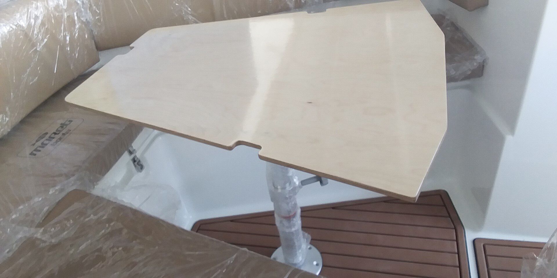 Esta bañera de proa dispone de dos asientos en V con mesa telescopica regulable, para uso de comedor y asimismo transformable en un fabuloso solarium muy comodo y seguro de uso y acceso, para 3 personas.